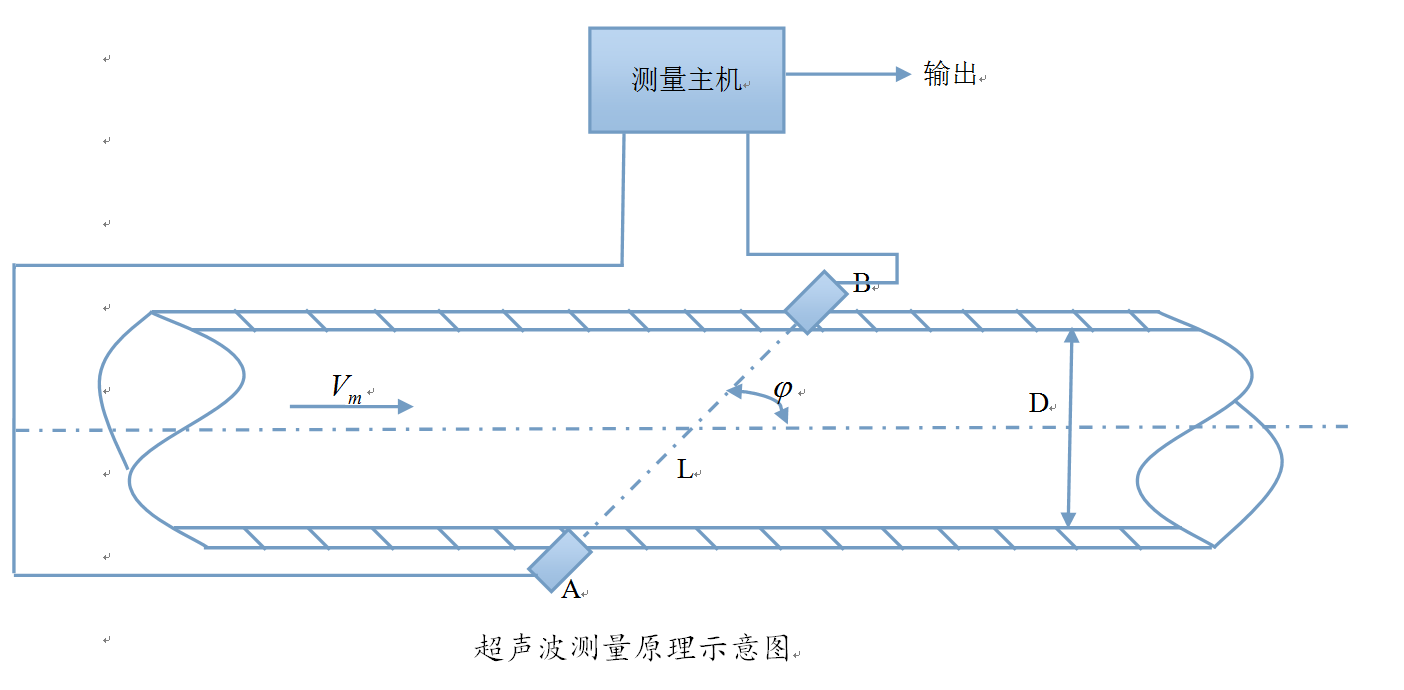 流量計以測量聲波在流動介質中傳播的時間與流量的關系為原理。通常認為聲波在流體中的實際傳播速度是由介質靜止狀態下聲波的傳播速度(