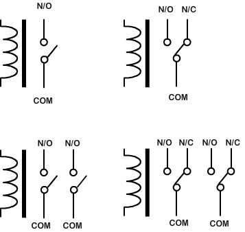 令人驚訝的是,微波爐板內通常有2或3個繼電器,通常是不同類型的,例如單擲單極(SPST),雙刀單擲(DPST)和雙刀雙擲(DPDT)