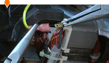 使用長鼻鉗將前(黃色)電線與現(xiàn)場斷開。