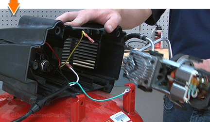 從外殼部分抽出泵/馬達,露出后部導線。