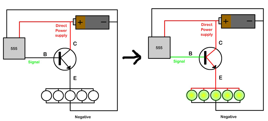 在這種情況下,為了使現(xiàn)實(shí)生活中的問(wèn)題變得更加真實(shí),我們?cè)谝粋€(gè)頻率上并聯(lián)開啟多個(gè)LED,如果將LED直接從芯片上斷電,這將是555試圖燒毀的事情。