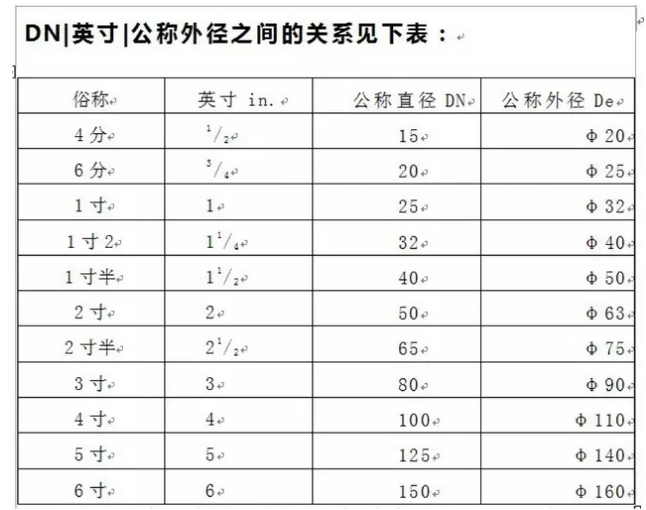 注意:這既不是外徑也不是內(nèi)徑;應(yīng)該與管道工程發(fā)展初期與英制單位有關(guān);通常用來描述鍍鋅鋼管,它與英制單位的對應(yīng)關(guān)系如下: