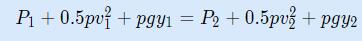 其中P1和P2分別是初始壓力和最終壓力,p是水的密度,v1和v2分別是初始速度和最終速度,y1和y2分別是初始高度和最終高度。 從管道中心開始測量每個高度。